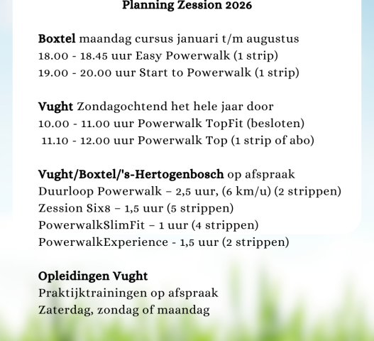 Powerwalk is een ideaal alternatief voor wie niet meer mag/wil/kan hardlopen maar wel lekker buiten wil blijven trainen. Conditie verbeteren, gezelligheid, verrassende routes, leuke gevarieerde lessen.